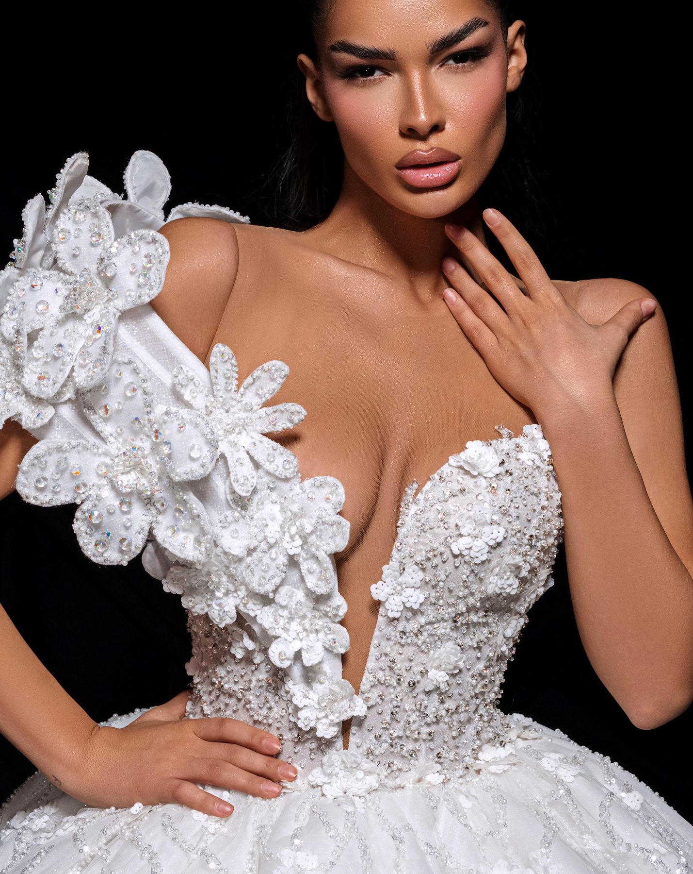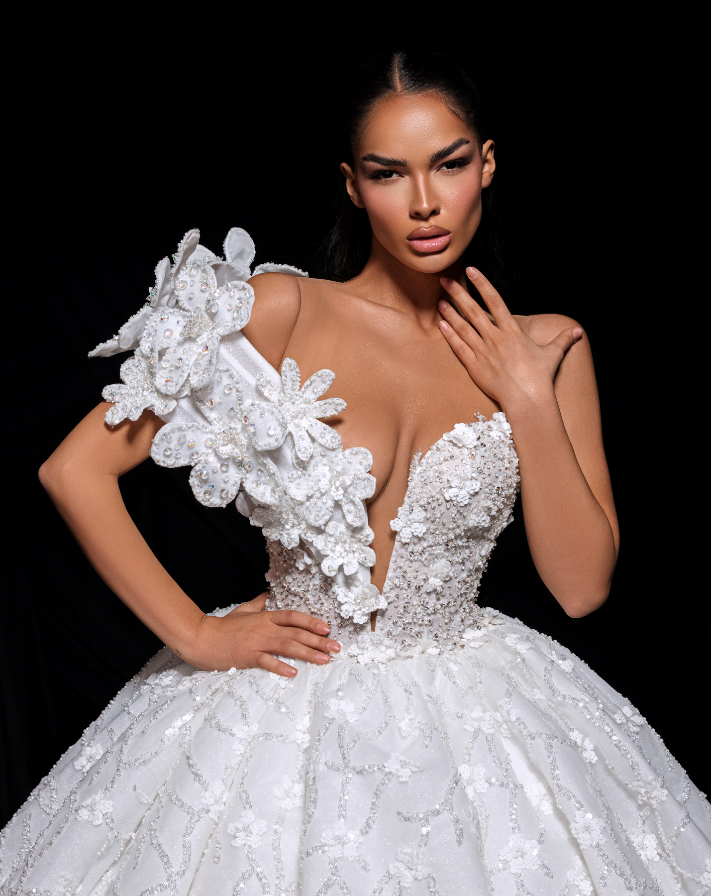 Voluminous skirt adorned with shimmering embroidery and beadwork