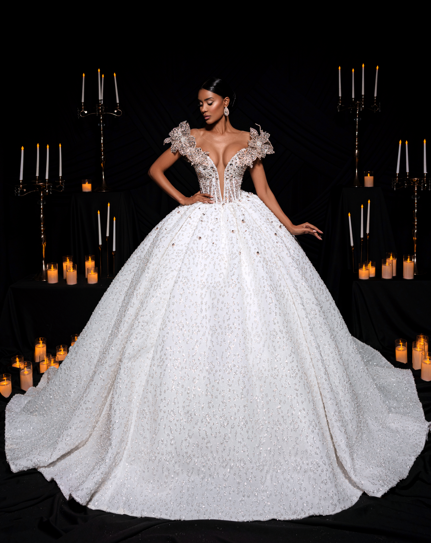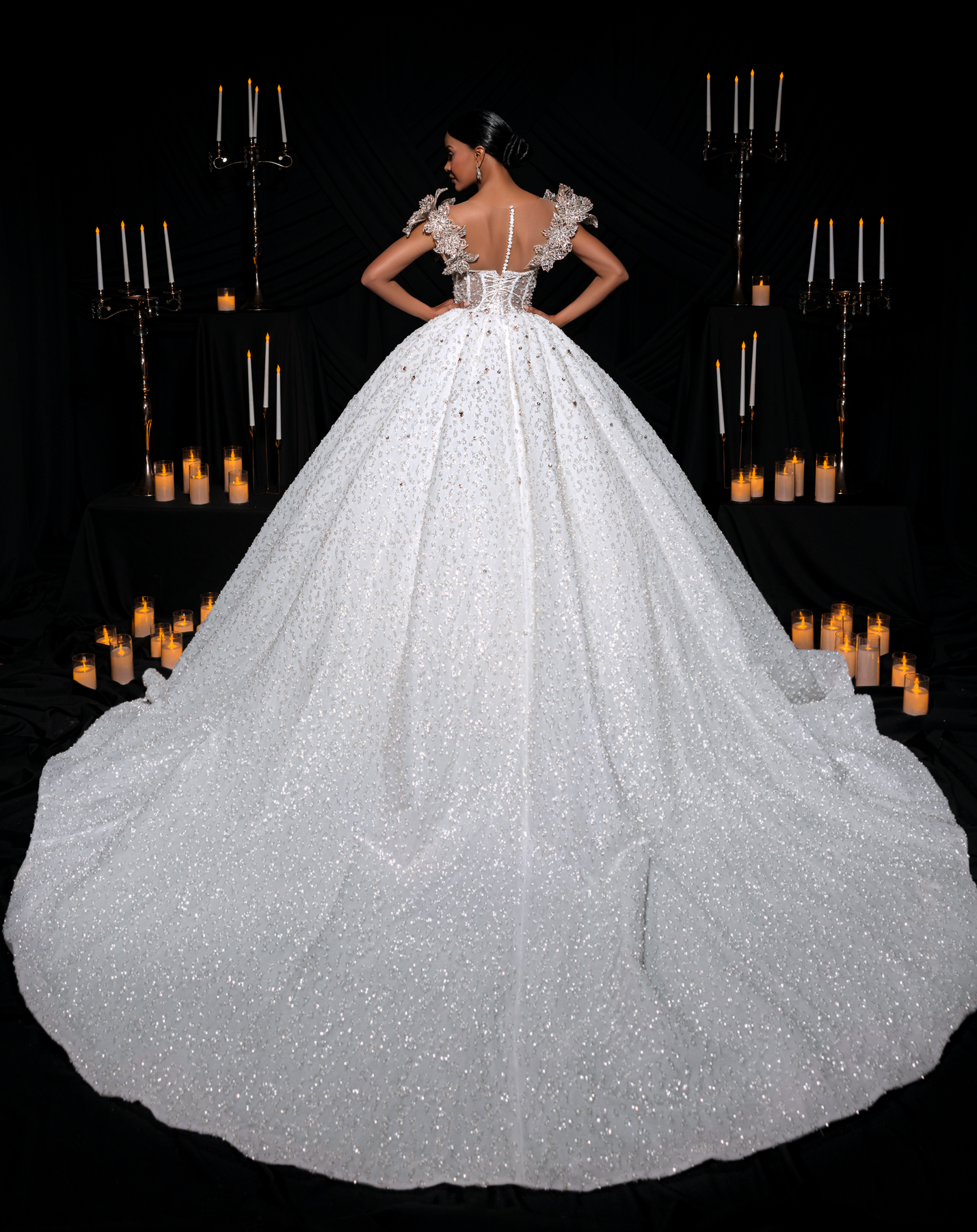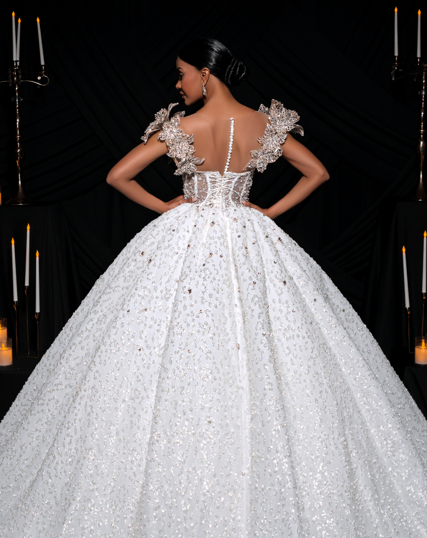 The bodice is fully encrusted with crystals